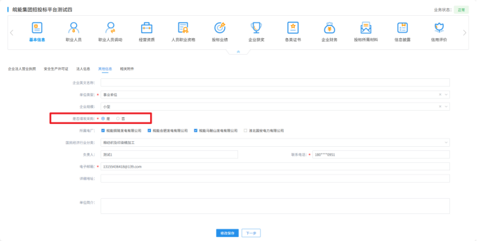 注:是否煤炭采购:若选择“是”,供应商可查看报名煤炭采购项目,若选择“否”,供应商无权限查看报名煤炭采购项目。
