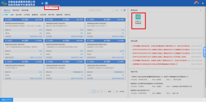 1、登录进系统,点击【交易乙方信息管理】按钮,进入主体信息管理页面,可对各类信息进行查看、维护。