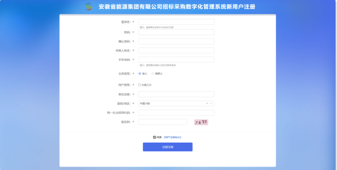 2、投标单位登录安徽省能源集团有限公司招标采购数字化管理系统(https://tab.wenergy.com.cn/qytpbidder),点击“立即注册”。如下图: