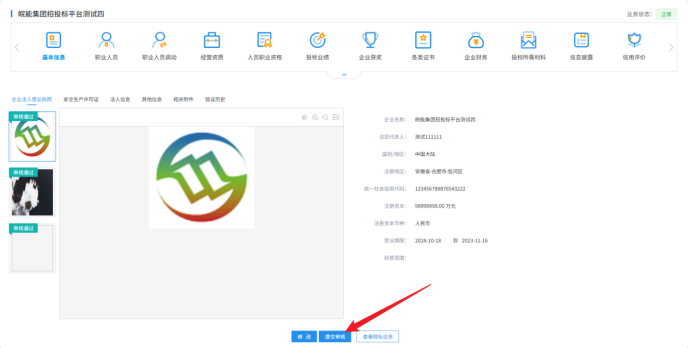 4、信息提交后,信息自动入库,状态为 核验通过。至此,供应商处于入库状态,可以参与投标。后续过程中,按需要可随时更新、补充相关信息。